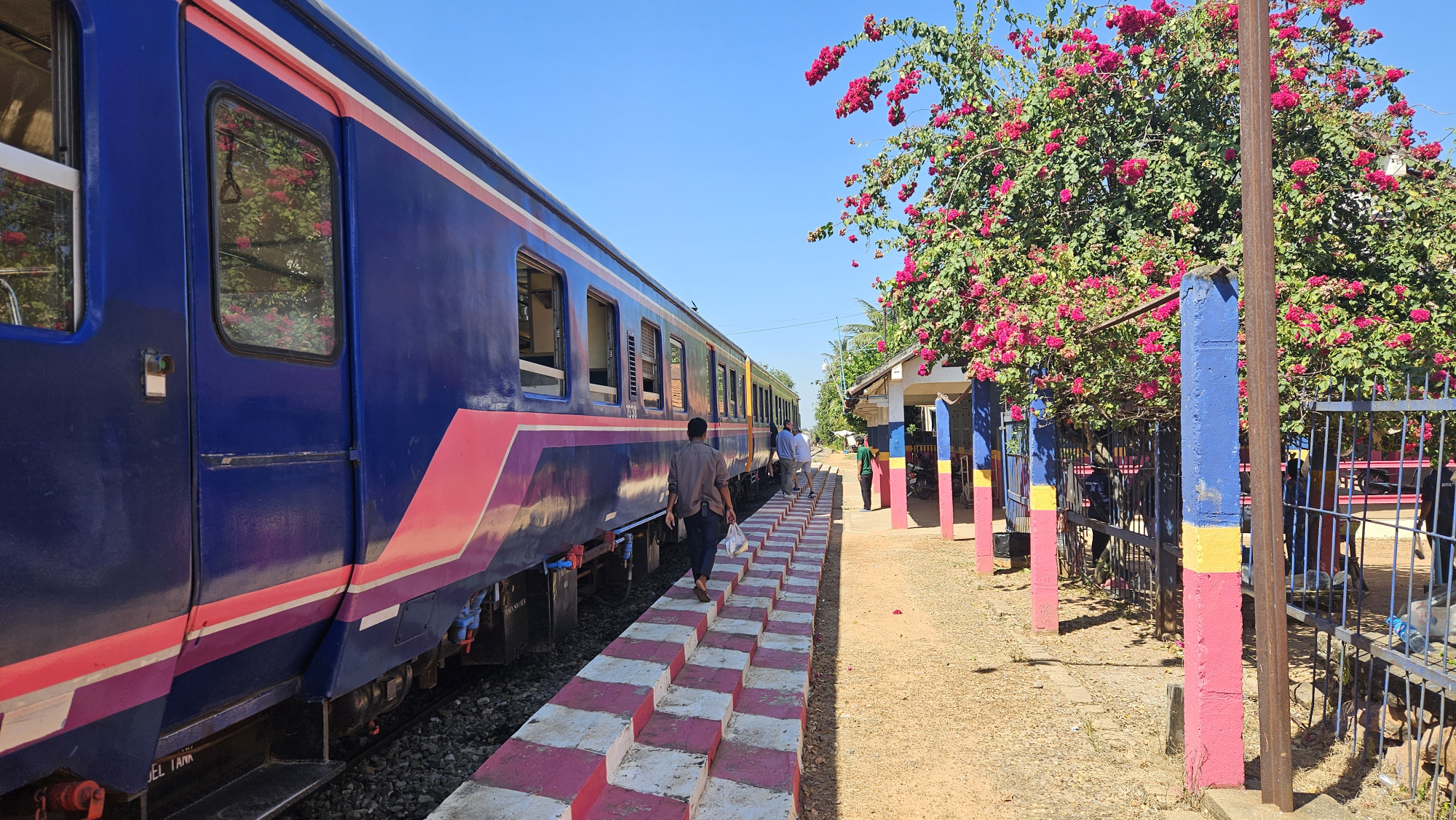 Trotzdem reisten wir Anfangs Dezember gerne wieder weiter. Da der Zug nach Battambang bereits um 6 Uhr losfuhr, hiess es sehr früh aufstehen.  Zugabteile wie Sitzbänke sind wie zu alten Zeiten, hart unbequem und mit Dauerdurchzug. Trotzdem genossen wir die 6h Fahrt.