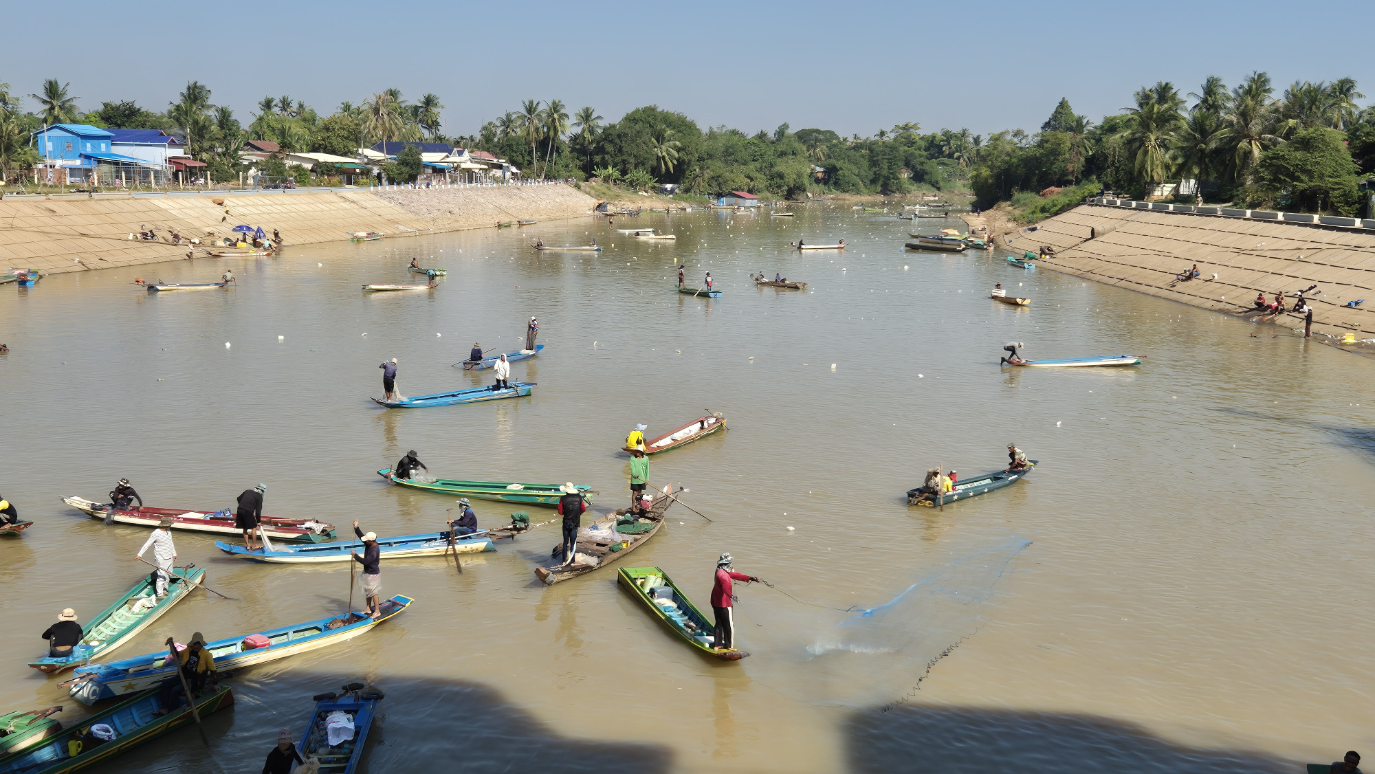 Nach dem tropischen Klima in Borneo, genossen wir das eher trockenere Klima in Kambodscha sehr. Natürlich war es, falls windstill und an der Sonne nach wie vor bei 25C-31C, eher schweisstreibend.Trotzdem fühlten wir uns als Wetter Glückspilze. Von den umliegenden Ländern wurden sehr starke bis sturmartige Regenfälle mit Überschwemmungen gemeldet.