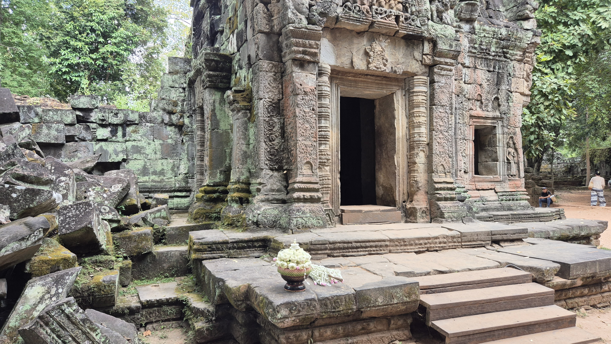 Mit einer 3h Busfahrt reisten wir weiter nach Kompong Thom wo es weitere sehr beeindruckende alte Religiöse Stätten gibt.  Savarman I machte 616 Jhr. Isanapura zur Hauptstadt seines Königreiches Chenla. Wir genossen es weit und breit die einzigen Besucher auf diesem riesengrossen Tempelgelände zu sein. Die alten Gebäude, die von Bäumen überbewachsenen Ruinen, die pfeifenden Vögel, das riesige vor der Hitze schützende Blätterdach dies alles hatten wir ganz für uns allein.  2 Nächte logierten wir im 4 Stern Glorious Hotel & Spa mit Swimmingpool was sehr angenehm war. Abends gab’s wie immer Streetfood. Wir sind uns einig, die 2-3 Sternhotel sind gemütlicher. Diese pompösen 4 oder 5 Stern Paläste sind uns zu unpersönlich.