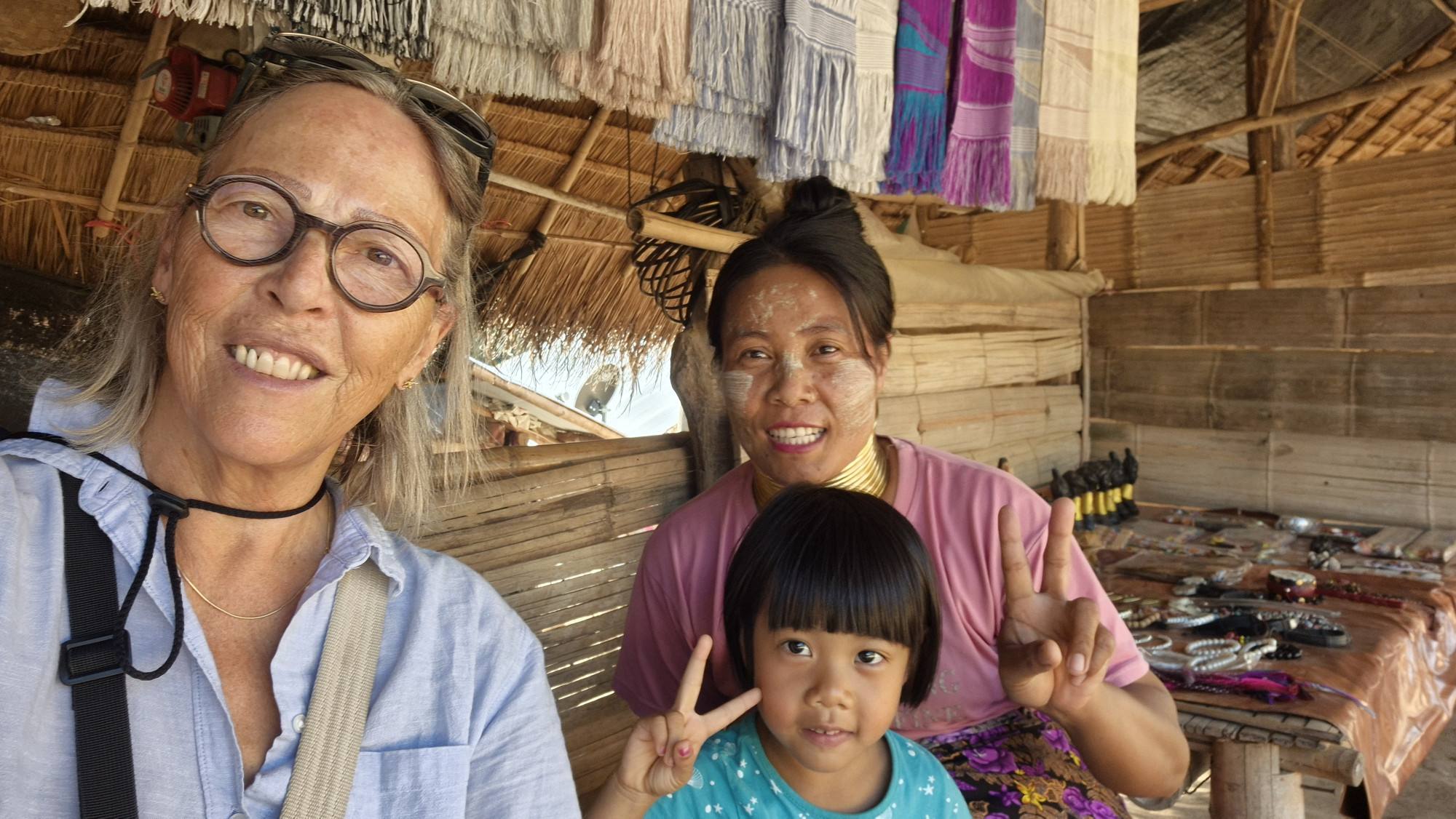 Im bereits gebuchten M2 Apartement Hotel war das Personal zwar sehr distanziert und eher unangenehm aber das Hotel erfüllte trotzdem für eine Nacht seinen Zweck. Wir mieteten am Tag der Ankunft gleich ein Motorrad und besuchten, nach einigem Suchen, die weit in einem Tal hinten lebenden „Neckringfrauen“. Diese Frauen sind Flüchtlinge aus Myanmar. Leider sind sie in Thailand nur geduldet, da sie eine Touristenattraktion sind, durften sie bleiben. Wir kauften ein paar Handarbeiten und spendeten zusätzlich einen Batzen in die Dorfkasse. Wohl wissend, dass diese Frauen nebst ihren Familien, auch ihre Männer im Krieg unterstützten. Viele ethnische Minderheiten werden immer noch täglich in Myanmar verfolgt. Die beeindruckenden Hals Ringe wirken als ob sie den Hals verlängern würden. Sie drücken jedoch das Brustbein, das Schlüsselbein sowie die Rippen nach unter. Der Sage nach entstand dieser Brauch, als bei einem Stamm eine junge Frau von einem Tiger am Hals zu Tode gebissen wurde. Dies war dem Häuptling eine Lehre, von da an mussten alle Frauen von Jung an Halsringe tragen.