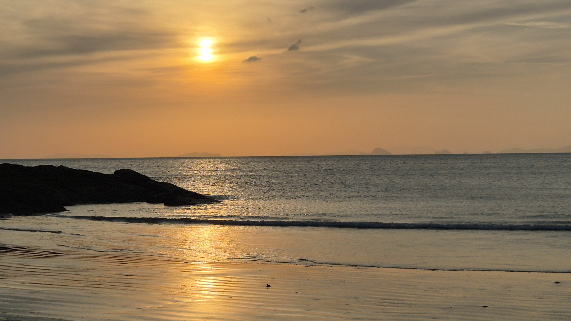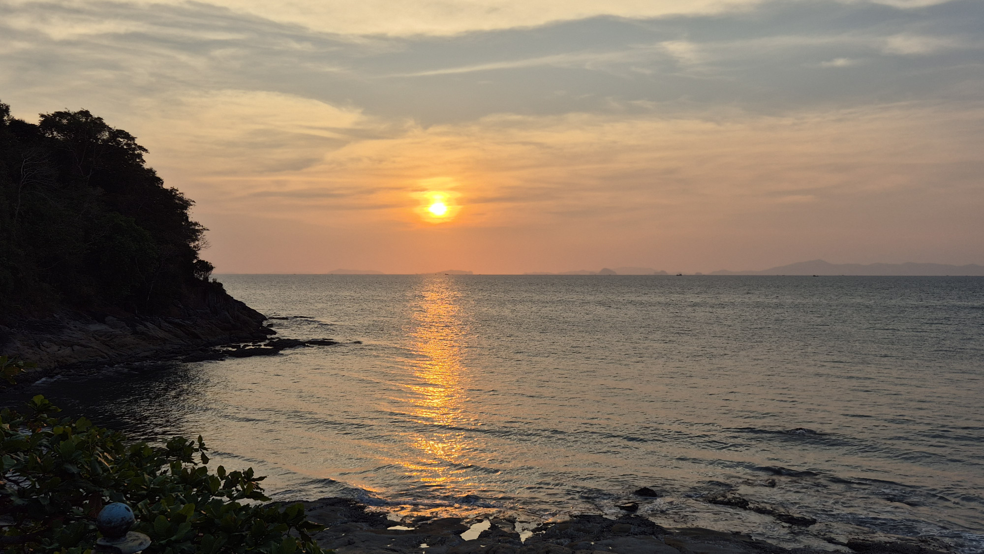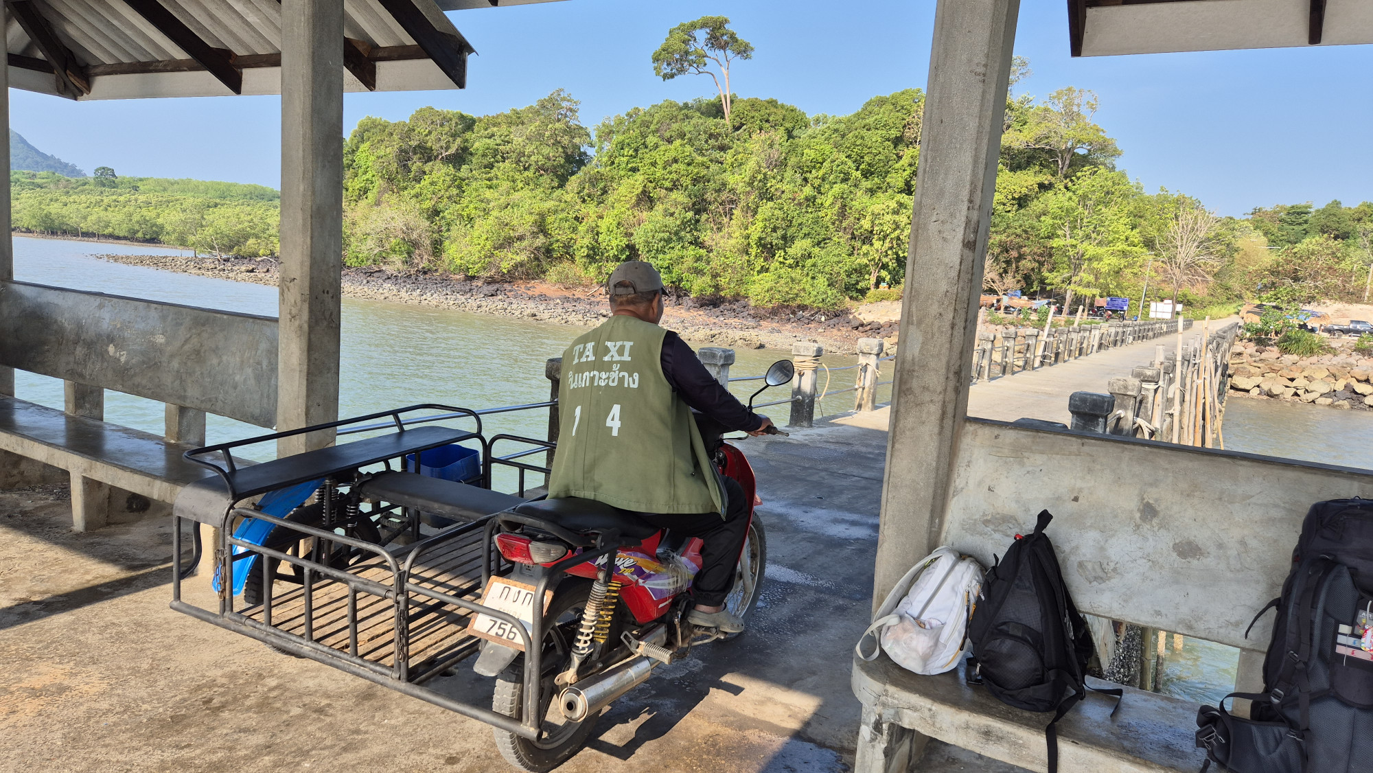 Vom 14.-21.2. logierten wir auf der Insel Ko Chang Ranong, nicht zu verwechseln mit der gleinamigen im Osten und im Golf von Thailand. Die Fahrt war wieder einmal sehr spektakulär. Ein Versorgungsboot, das zusätzlich noch ein paar Menschen mitnimmt. Vollbeladen mit Eisbrocken, Fischen, Lebensmittel, alles was so eine Insel benötigt und wir vielen Menschen mit viel Gepäck. Auf der Insel angekommen wurden wir einzeln auf je ein Motorroller geladen, Martin mit beiden Rücksäcken und dann quer über die Insel zu Mamas Bungalow gebracht. Im lauschigen Bambushäuschen Nr. 11 erholten wir uns für eine Woche. Wir hatten einen herrlichen Blick über die ganze Buch und nur ein paar Schritte bis zum Restaurant. Schwimmen, fein essen, bisschen im Dschungel wandern, die Insel mit einem Motorrad erkunden und einfach Sein. Die letzten Tage unserer Reise vergingen im Nu.
