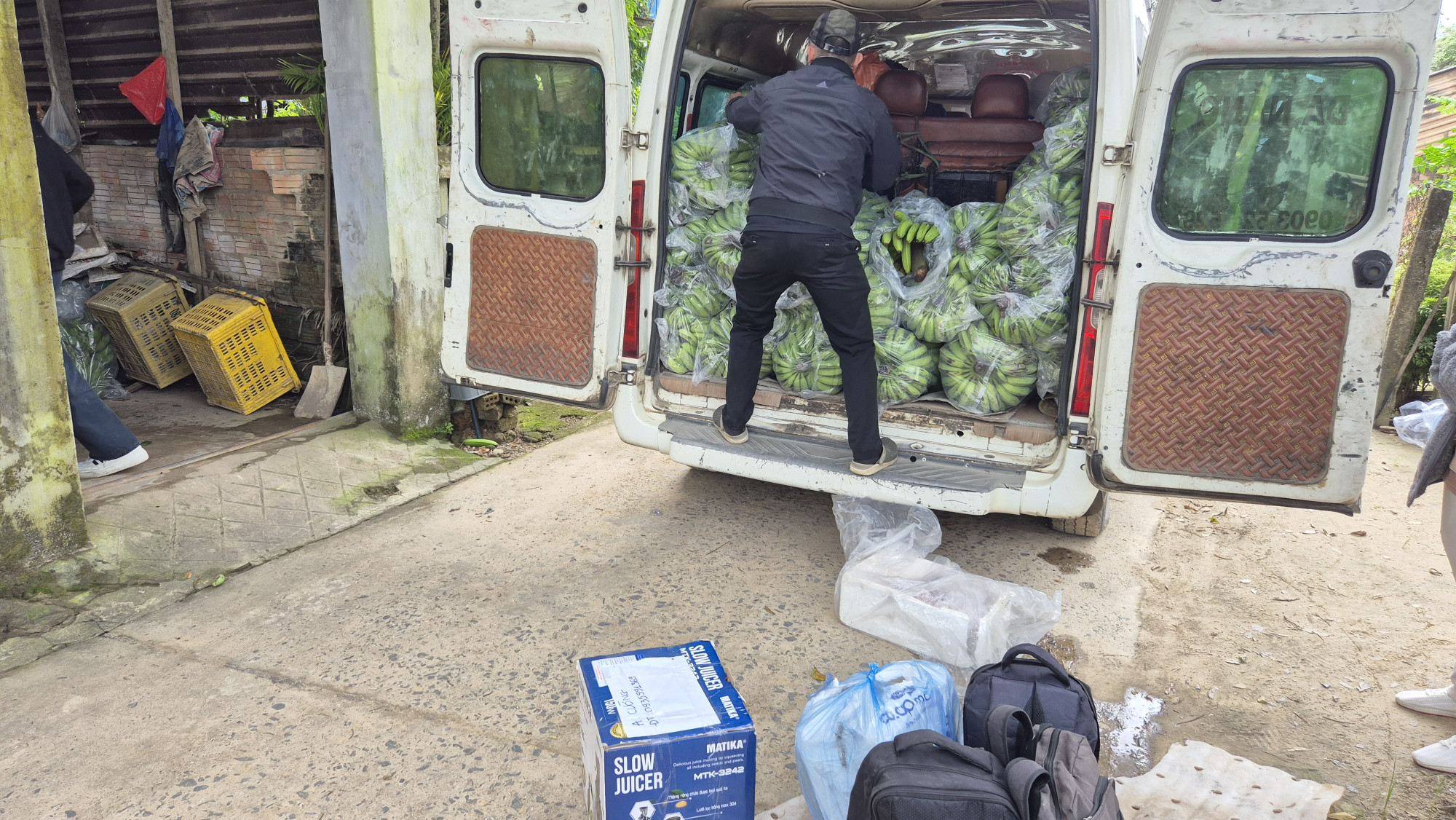 Langsam planten wir unsere Weiterfahrt nach Da Nang. Da wir auf der letzten Busfahrt (16Plätzer) zu wenig Platz hatten, versuchten wir eine bessere Variante zu finden. Vom Regen in die Traufe. Unser Bus nach Da Nang entpuppte sich als eigentliches Transportunternehmen. Der Besitzer lud an jeder Ecke Menschen auf, alle mit Gepäck, es wurde immer enger und enger. Der uralte Bus, hatte durchgesessene Sitze und dröhnte entsprechend.  Als wir dachten, naja es ist zwar eng, aber ein wenig Platz hatten wir ja noch, da hielten wir in einem Dorf auf dem Land an und der Bus wurde bis unters Dach mit grünen Bananenstrünken vollgestopft. Unter den Sitzen Schachteln, wir mussten effektiv um unsere Sitzplätze kämpfen.  Anstatt das versprochene bequeme Sitzen mit genügend Beinfreiraum und einer 5h Fahrt, hatten wir die schlimmsten Sitze die man sich vorstellen konnte, keinen Beinfreiraum und 7.5h Fahrt. Zuletzt wurden wir irgendwo in der Vorgegend von Da Nang mehr oder weniger gefühlt rausgeschmissen und waren beide stinke sauer.