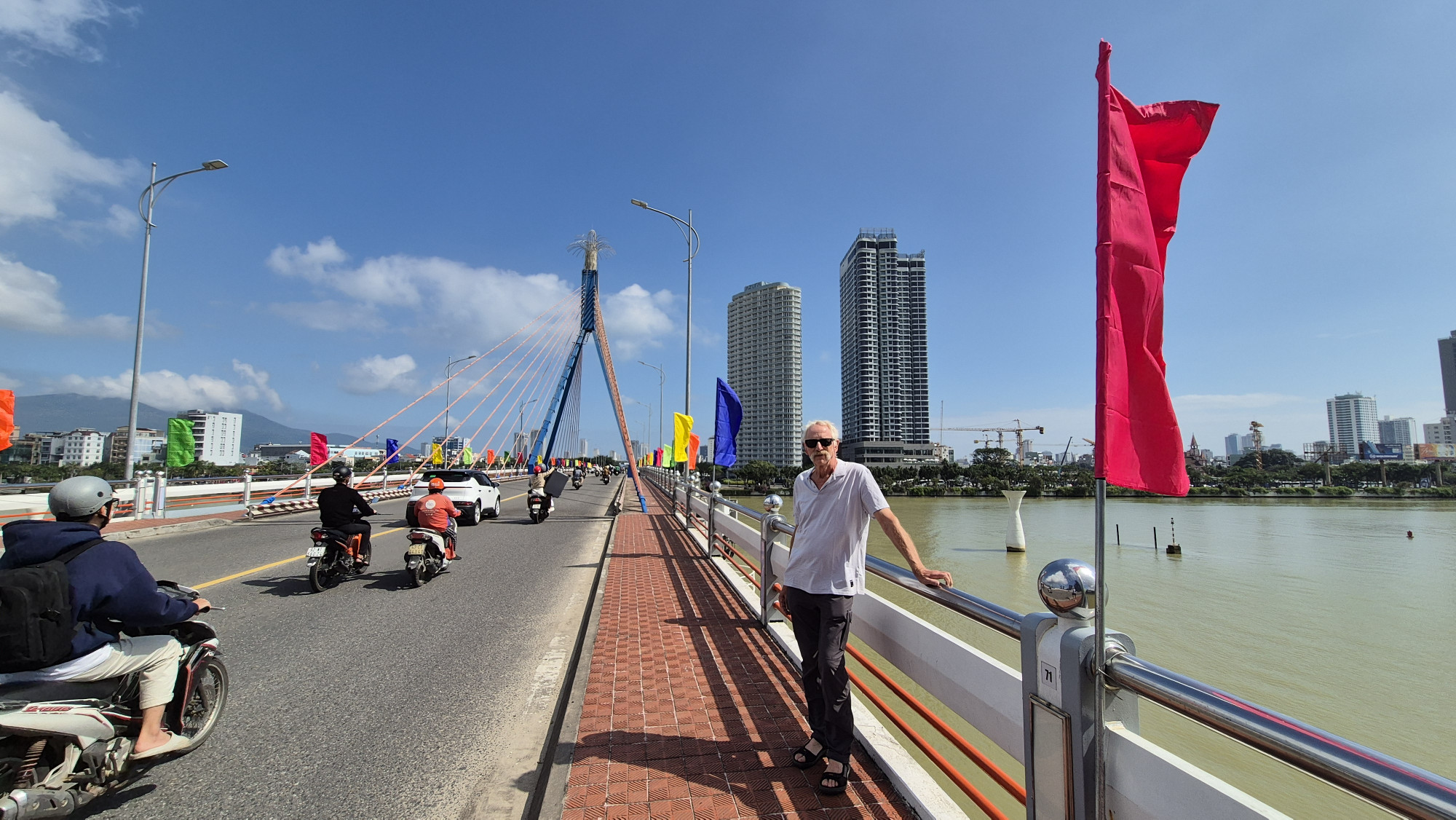Da Nang ist eine moderne und lebendige Küstenmetropole. Am ersten Tag organisierten wir die Zugweiterfahrt nach Dong hoi, bestaunten die diversen Brücken mit der Skyline und am Nachmittag erhielten wir unsere Visas um später nach Laos einreisen zu können. Abends bei Sonnenschein, noch ein kühles Bad mit Sicht bis weit über die Stadt, inkl. Fluglandepiste. Grossstadt Feeling mit Attikawohnung groove.
