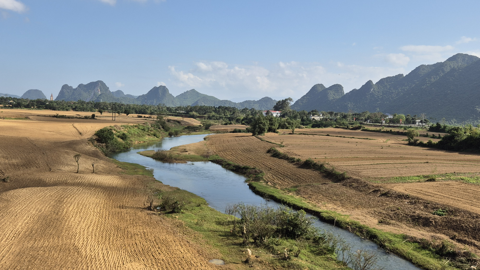 Eine 6h Busfahrt brachte uns am 12.1. nach Dien Bien Phu. Wieder ein sehr voll gestopfter Bus, nicht die bequemste Art zu reisen, leider aber die Einzige. Im Hotel An Loc hatten wir ein super sonniges Südzimmer mit Balkon gebucht. Dieses lag zwar mitten in der Stadt, aber im 4 Stock mit Blick über die Dächer kümmerte uns dies wenig. Nach nur 2 Nebeltagen, saugten wir die Sonnenwärme so richtig auf. In DBP assen wir Pizza, mieteten ein Moto erkundeten die Gegend, kauften beim Früchtehändler geschälte Früchte, assen im Hotelzimmer Frühstück und trockneten dank Sonnenfenstern unsere Wäsche. Als einzige Touristen weit und breit genossen wir einfach den Alltag, den Tag, das jetzt, das Sein und überhaupt das Leben.